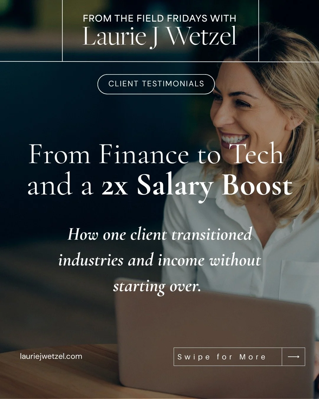 ”Laurie was instrumental in helping me make one of the most significant transitions in my career. Moving from financial services to the tech industry, where I doubled my salary.””